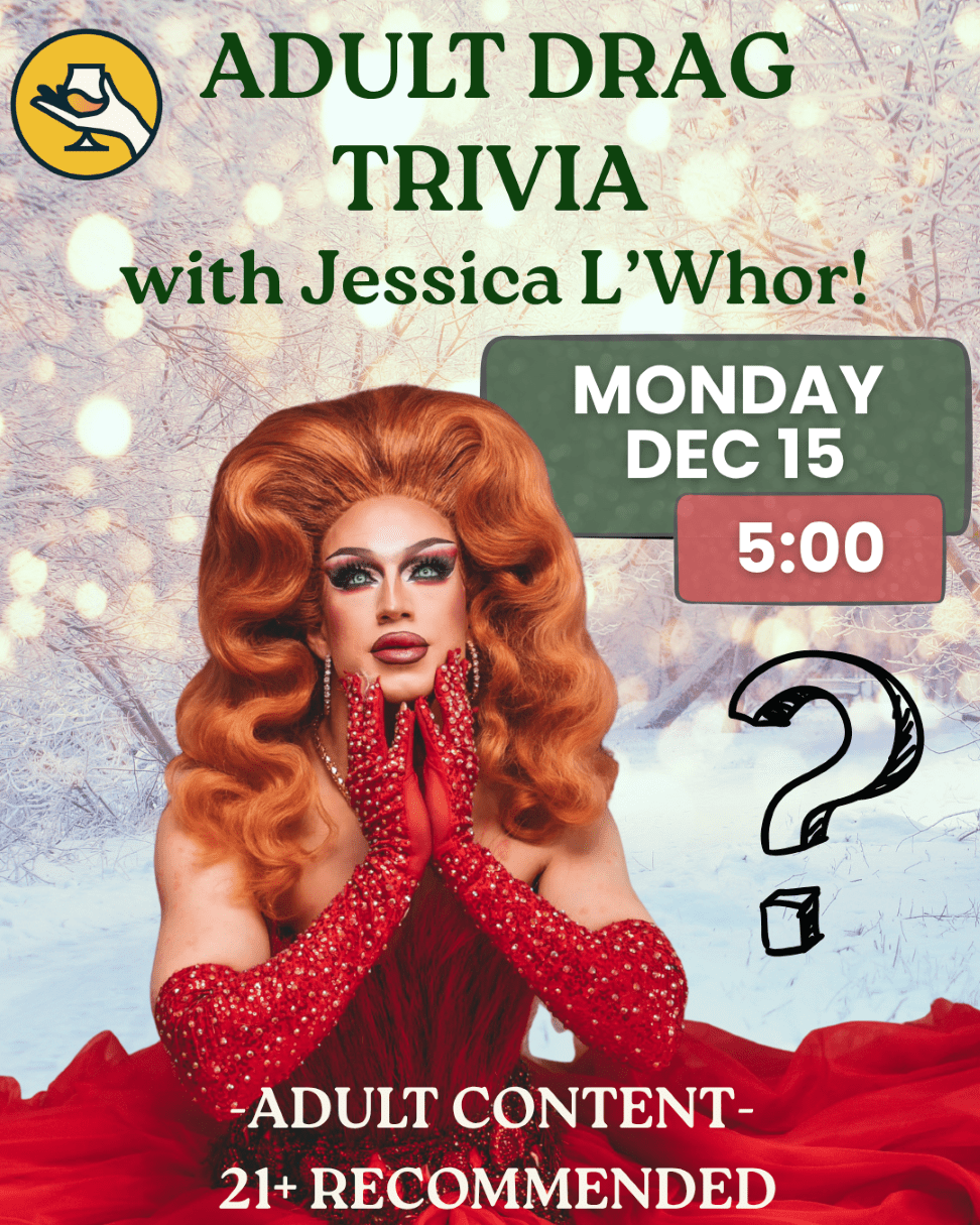 It’s Adult Trivia night with Jessica L’Whor! Join us at 5:00 PM for a night of Adult themed trivia and fabulous prizes with one of Colorado’s top drag stars!